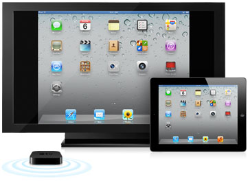 By simply tapping the “AirPlay” button on a supported iOS 5 device, users can mirror exactly what is on their screen to the TV wirelessly. This means that as you use an app or show a video , it will be wirelessly beamed to the TV. Perfect.